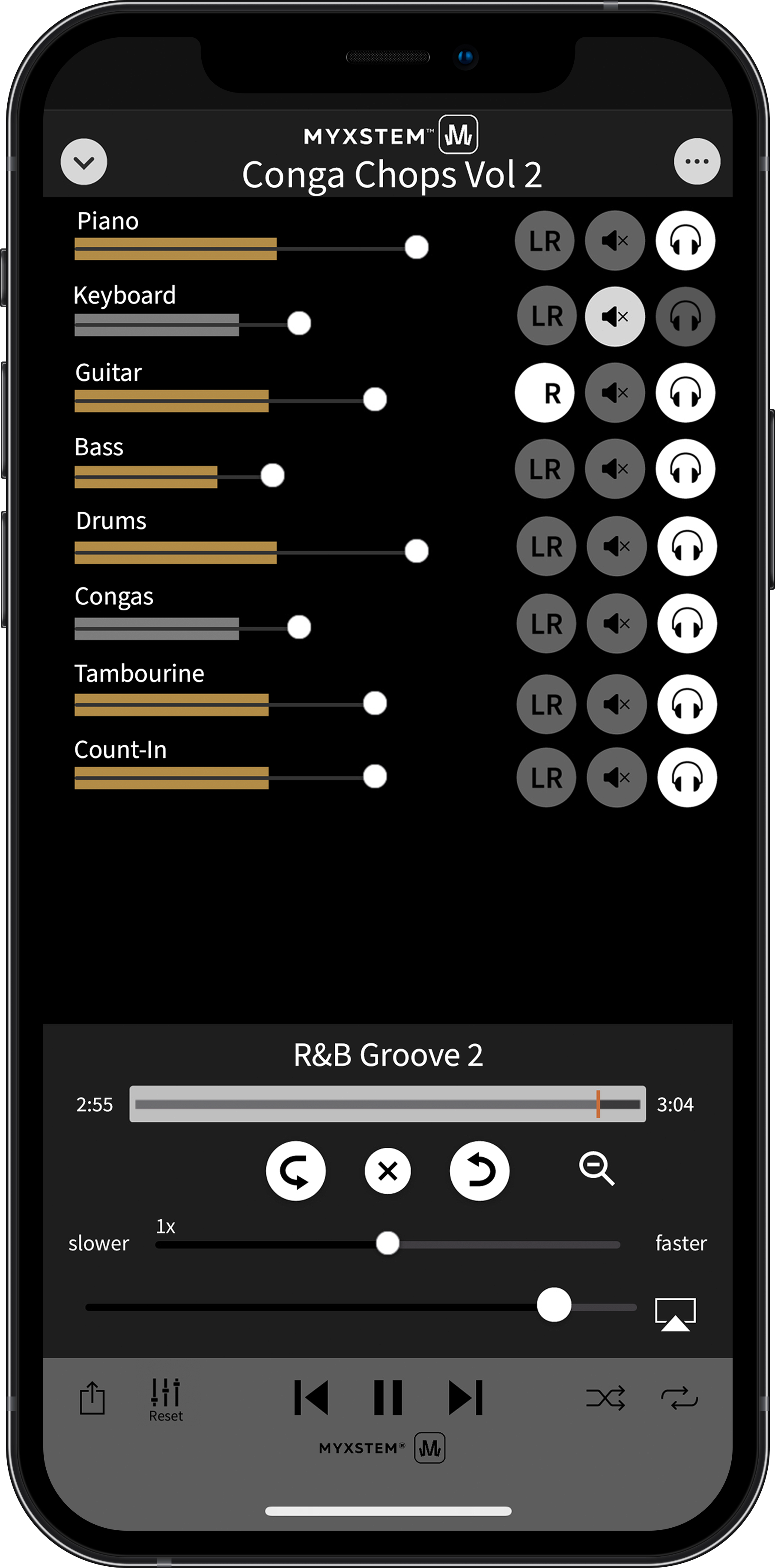 'Conga Chops Practice Loops - Vol 2' is a MYXSTEM app release, allowing users to completely control the listening experience.