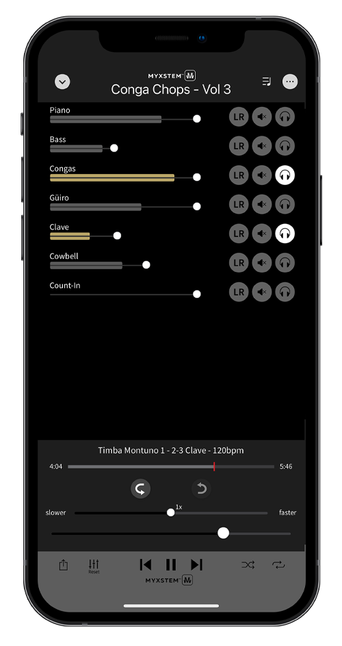 'Conga Chops Practice Loops - Vol 3' is a MYXSTEM app release, allowing users to completely control the listening experience.